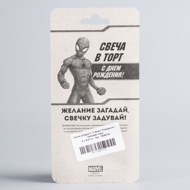 - Свеча в торт 5 "С Днем Рождения", Человек-паук