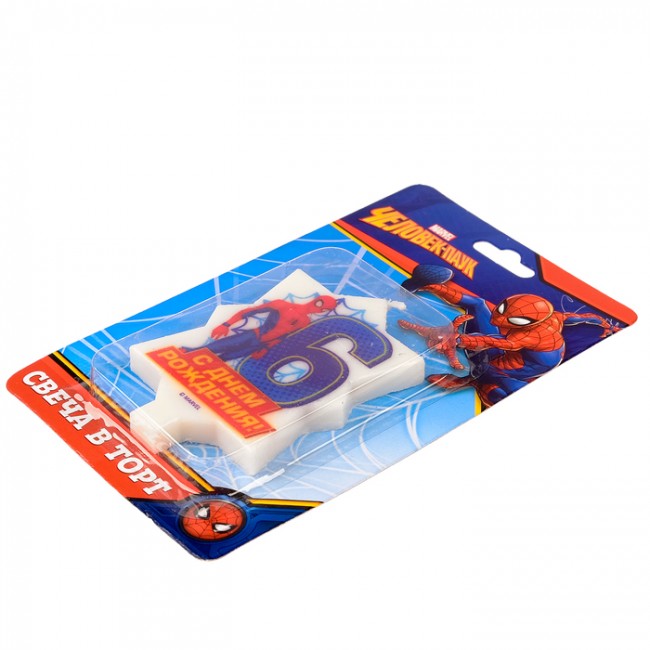 Свеча в торт 6 "С Днем Рождения", Человек-паук, 5 х 8 см