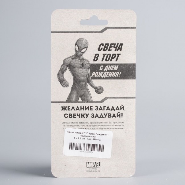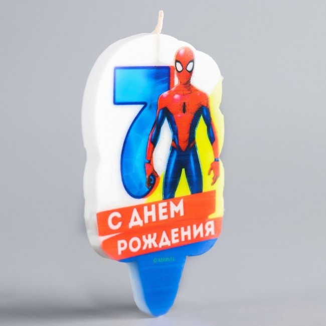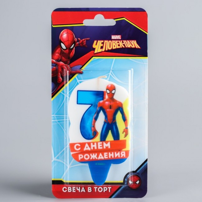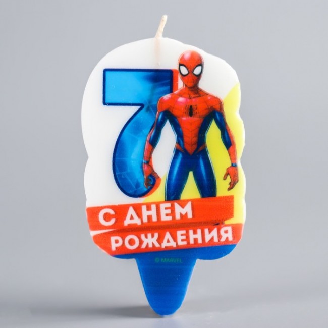 Свеча в торт 7 "С Днем Рождения", Человек-паук