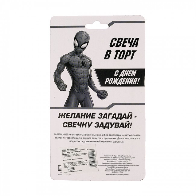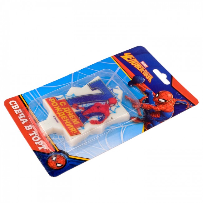 Описание Свеча в торт 7 "С Днем Рождения", Человек-паук, 5.1 х 7.9 см