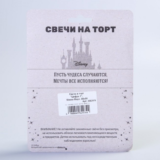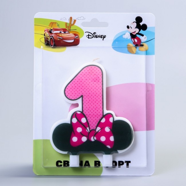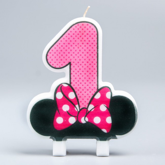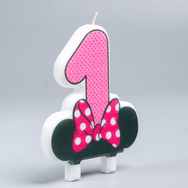 - Свеча в торт "Цифра 1", Минни Маус бантик, 80х100
