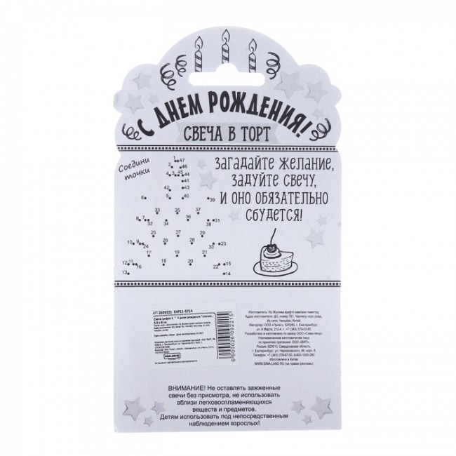 - Свеча в торт цифра 1 " С днем рождения"