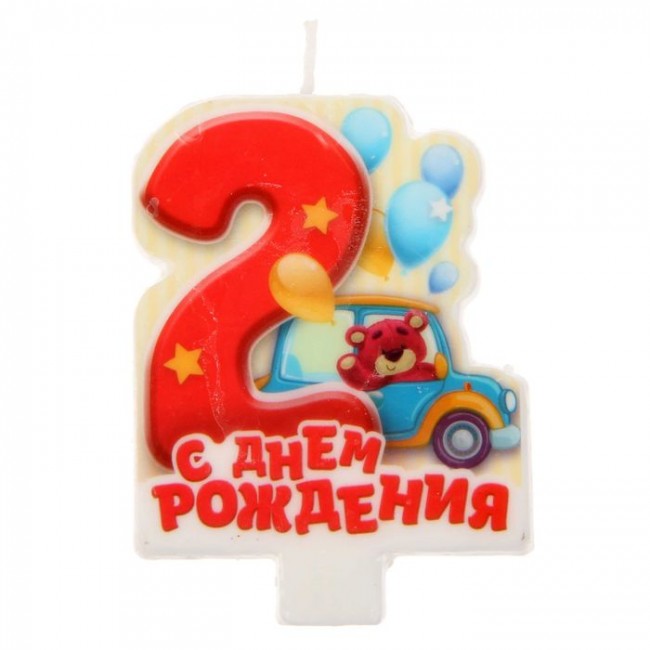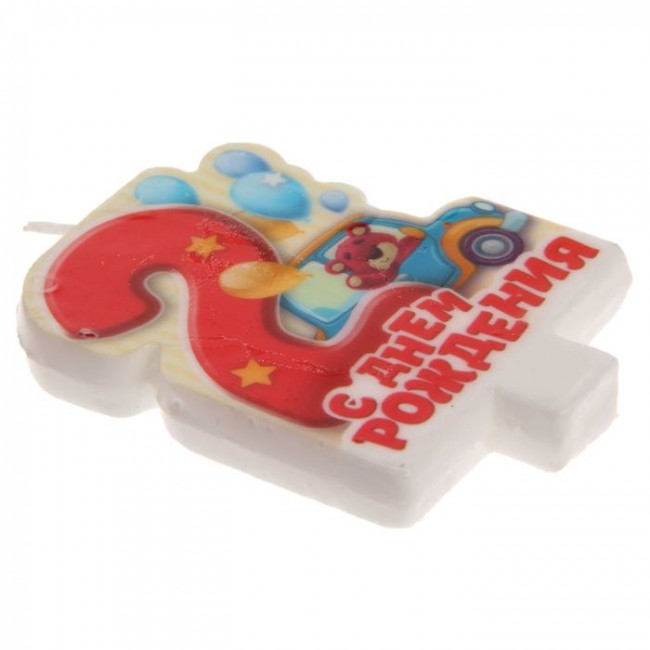 Свеча в торт цифра 2 для мальчиков "С днем рождения"