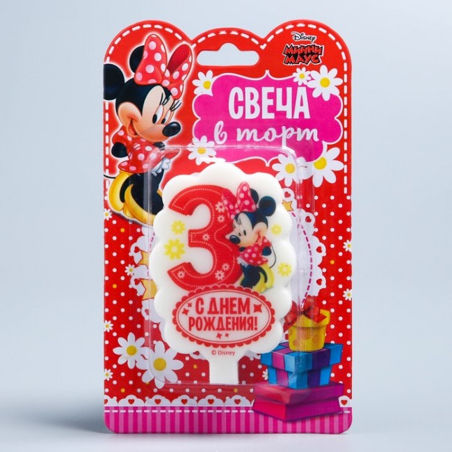 Описание Свеча в торт Дисней 3 "С Днем Рождения", Минни Маус
