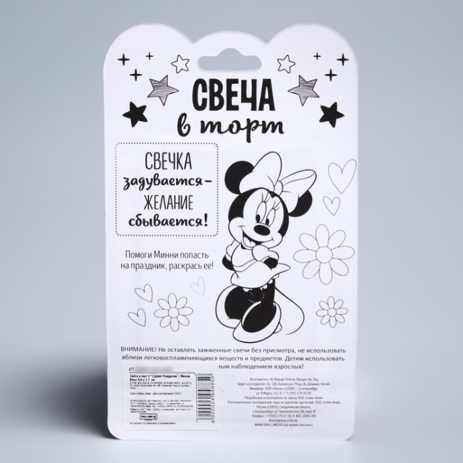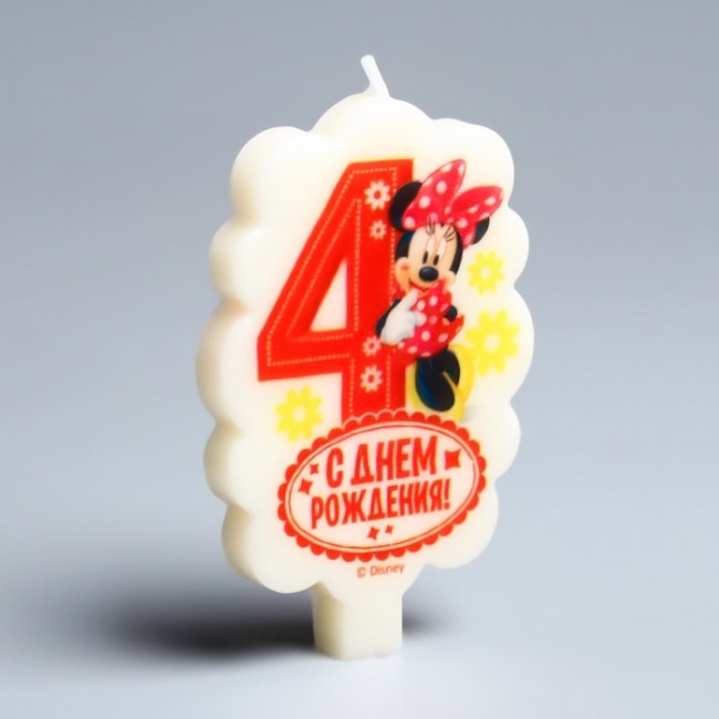 Описание Свеча в торт Дисней 4 "С Днем Рождения", Минни Маус