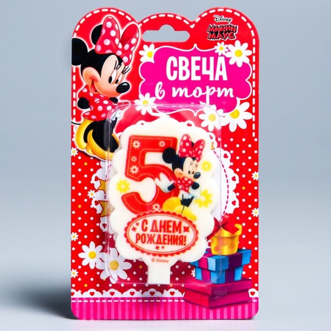 Свеча в торт Дисней 5 "С Днем Рождения", Минни Маус