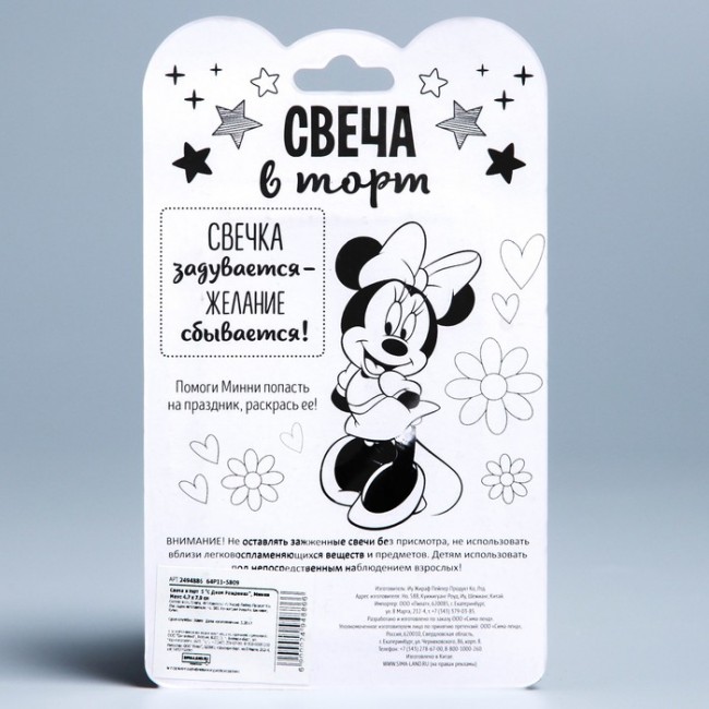 Описание Свеча в торт Дисней 5 "С Днем Рождения", Минни Маус