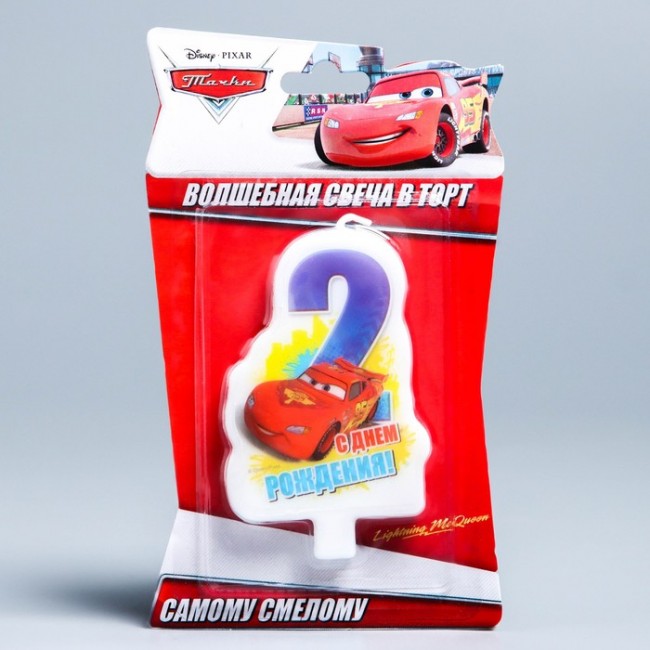 Свеча в торт Дисней "С днем рождения" цифра 2 Тачки