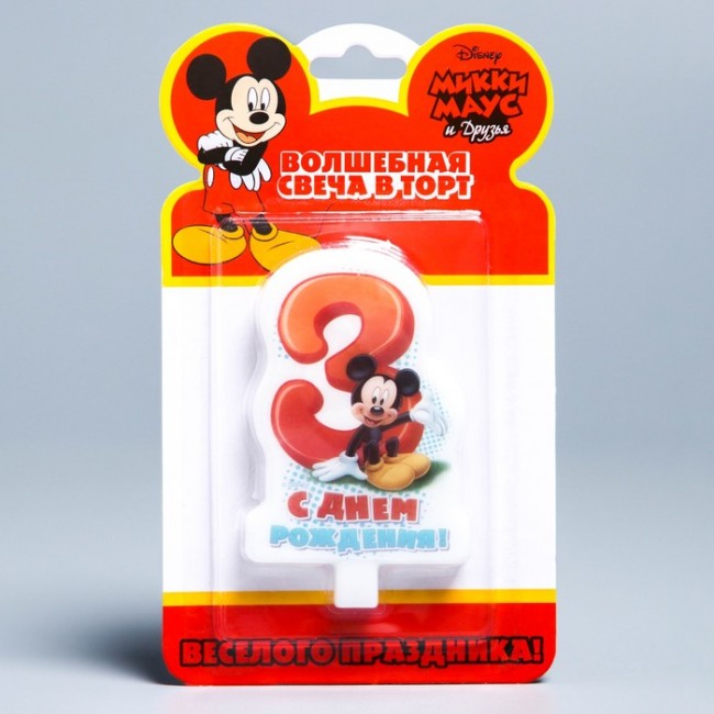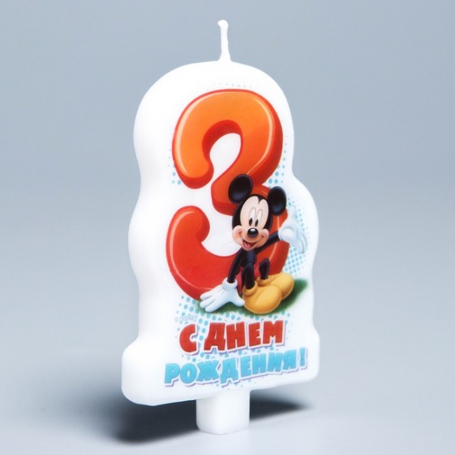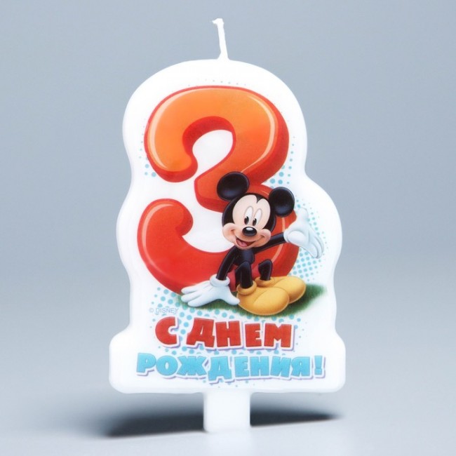 Теги: Свеча в торт Дисней "С днем рождения" цифра 3 Микки-Маус