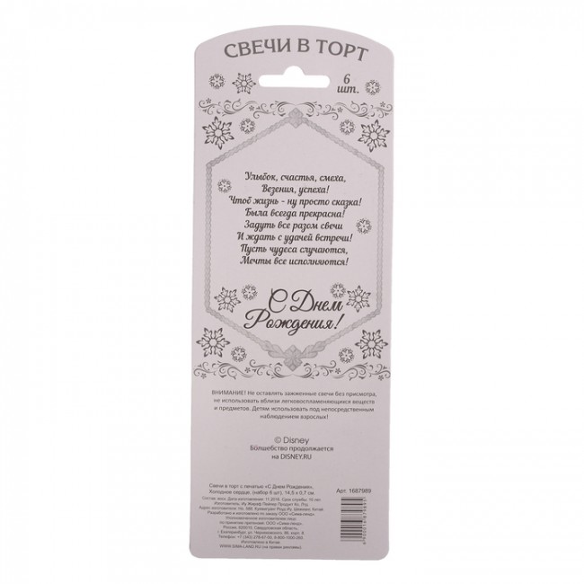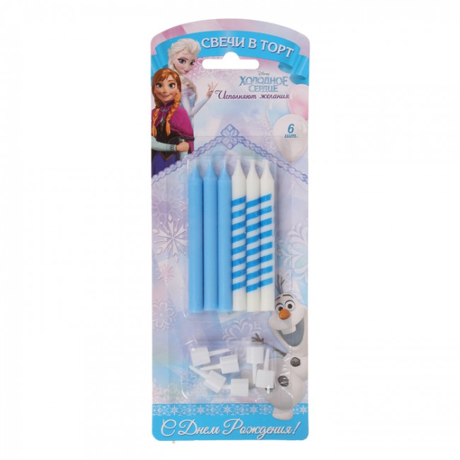- Свеча в торт Дисней "С Днем Рождения", Холодное сердце, (набор 6 шт)