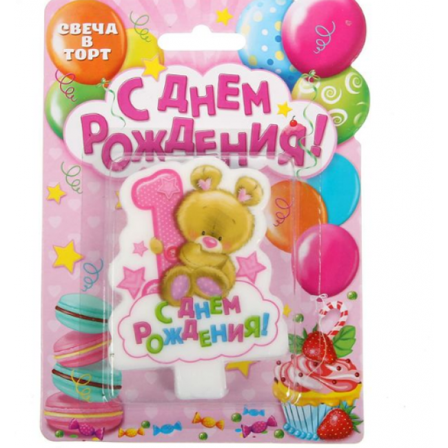 - Свеча в торт цифра 1 для девочек "С Днем Рождения", 6 х 8 см