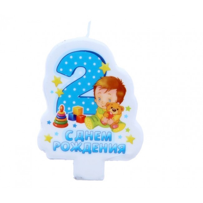 - Свеча в торт цифра 2 для мальчиков "С днем рождения!", 6 х 8 см