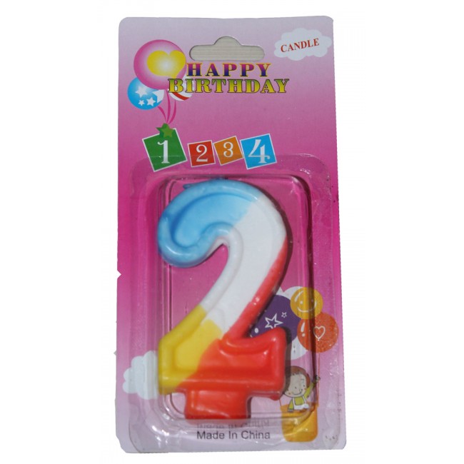 Яркая свеча в виде цифры 2 разноцветная для украшения праздничного торта на День Рождения.