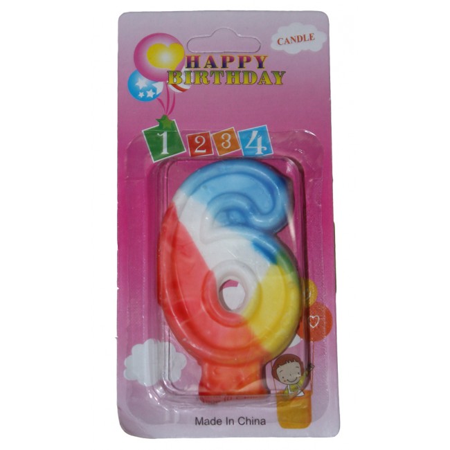 Свеча в торт цифра 6 цветная
