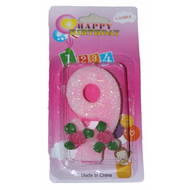 Свеча в торт цифра 9 розы
