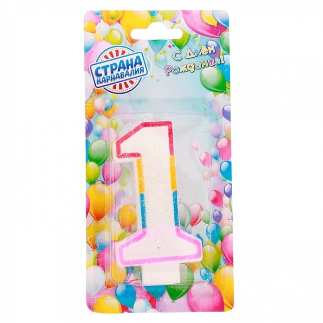 Теги: Свеча восковая для торта с блестками "Блестящий ободок" цифра 1