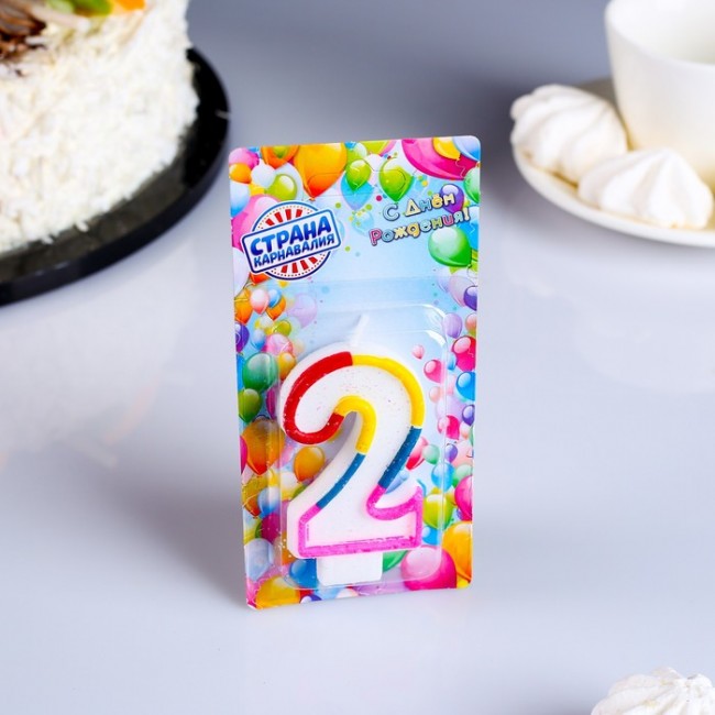 Свеча восковая для торта с блестками "Блестящий ободок" цифра 2