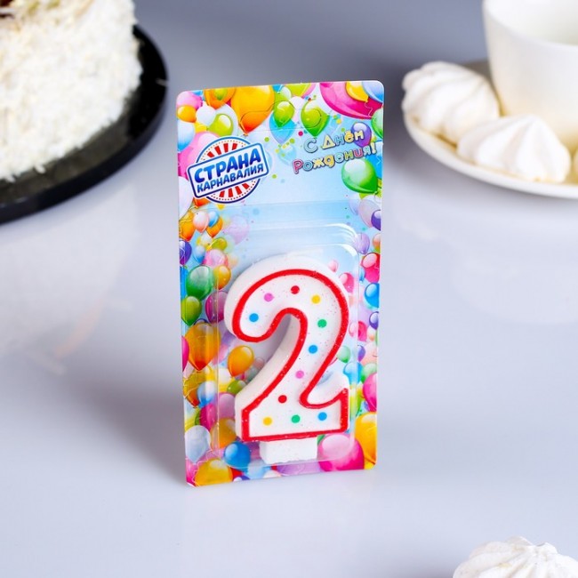 Описание Свеча восковая для торта с блестками "Блестящий ободок" цифра 2