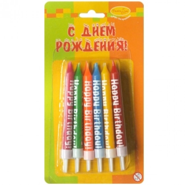 - Свечи с надписью "Happy birthday" 12шт с держателями 8см