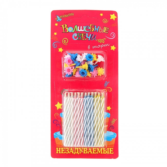 Отзывы Свечи восковые для торта незадуваемые "Яркая полоска" (набор 24 шт и 24 подставки)