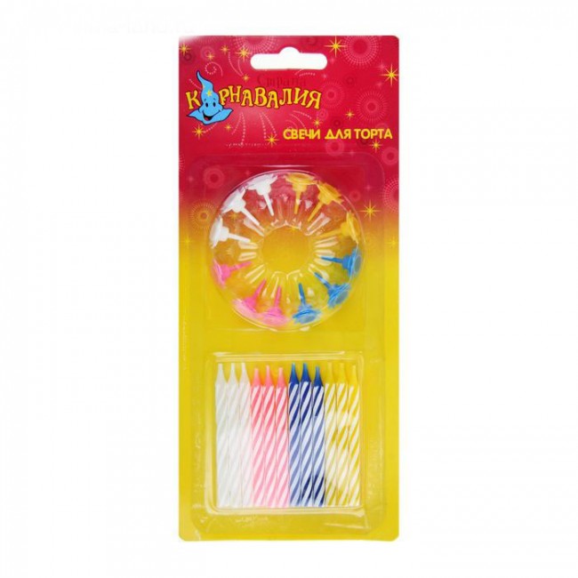 - Свечи восковые для торта "Яркая полоска" (набор 12 шт и 12 подставок)