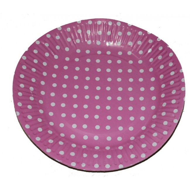 - Тарелка БОЛЬШАЯ розовая в горох