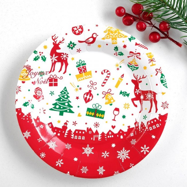 - Тарелка бумажная "Новогодний город" набор 6 шт