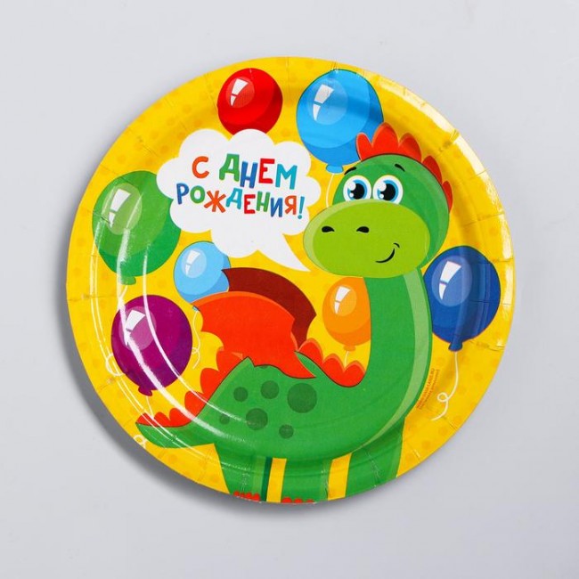 - Тарелка бумажная «С Днём Рождения», дракон, 18 см