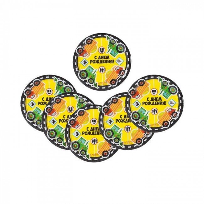 - Тарелка бумажная «С Днём Рождения», грузовые авто, 18 см
