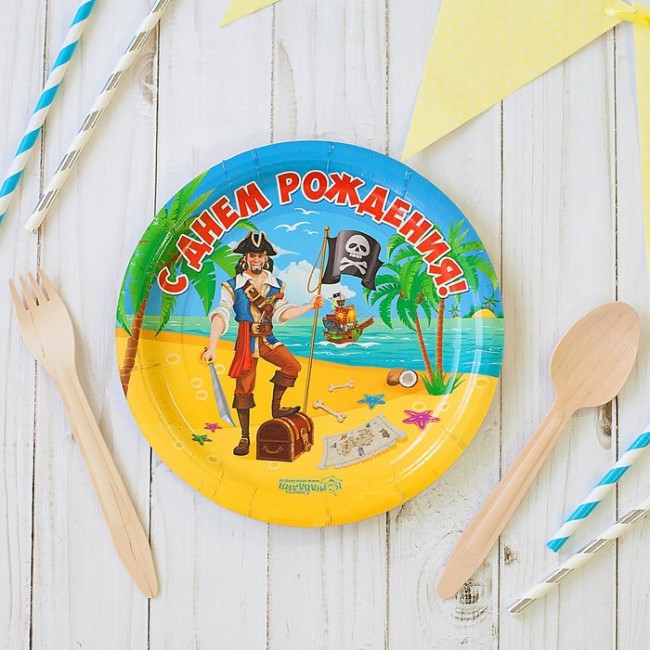 Устали стоять у раковины после большого застолья или бояться, что нерадивый гость разобьёт любимый сервиз? Тарелка бумажная «С Днём Рождения!», пират, 18 см избавит вас от этих проблем! Это идеальное решение для вечеринки или пикника. Яркий дизайн создаст праздничное настроение благодаря оригинальному авторскому рисунку. Бумажная посуда безопасна, не содержит хлор, тяжёлые металлы и токсичные примеси и не выделяет вредных веществ при контакте с горячими продуктами. Используя её, вы заботитесь о себе и окружающей вас природе, ведь тарелки просто утилизируются и быстро саморазлагаются в естественных условиях.