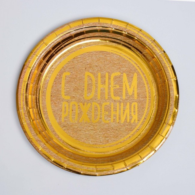 - Тарелка бумажная «С днём рождения», золотые нити, набор 6 шт., 18 см