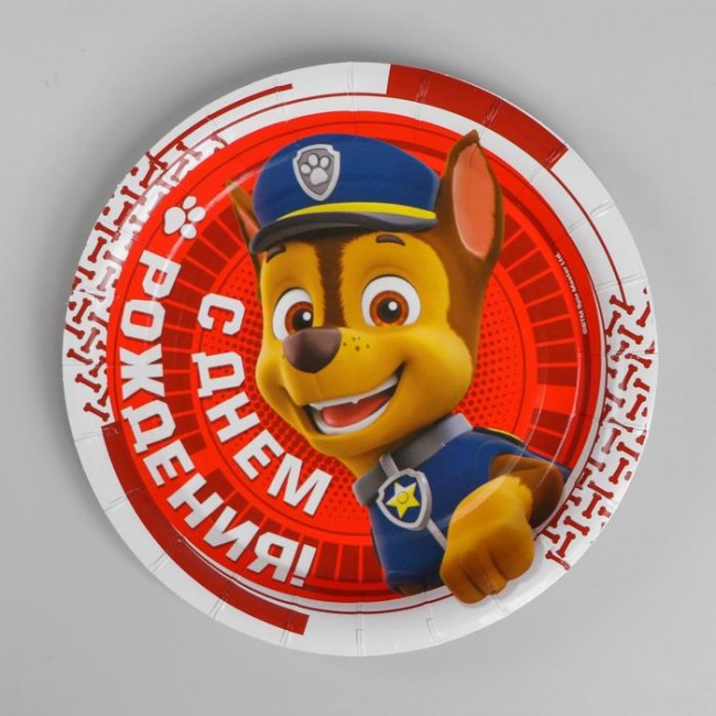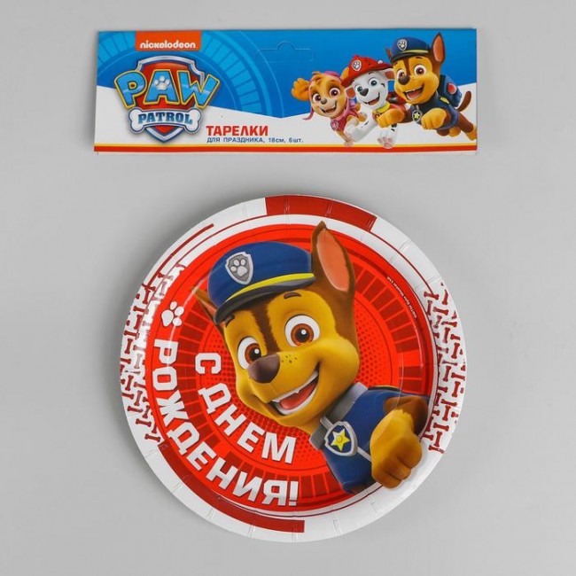 - Тарелка бумажная «Щенячий Патруль. С днём рождения!», набор 6 шт., 18 см