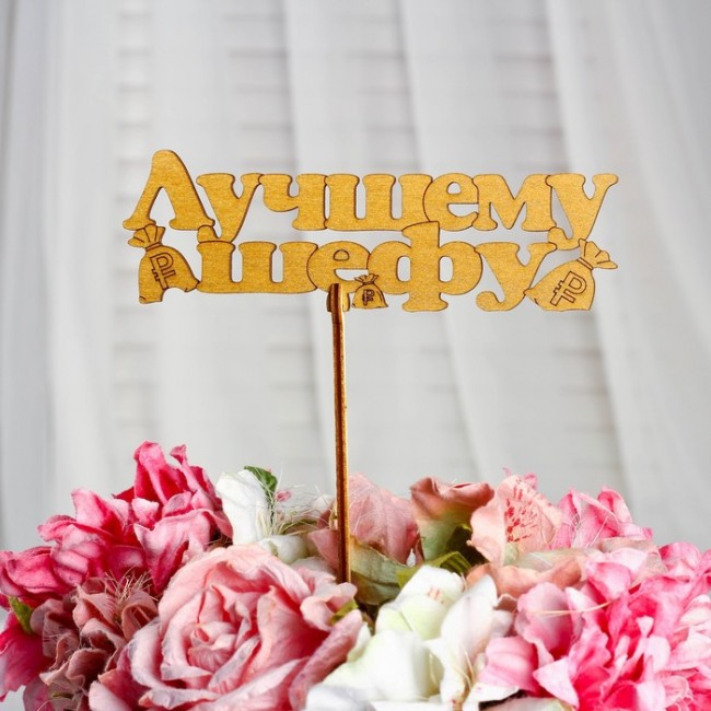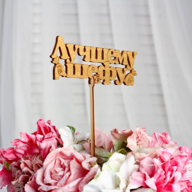 - Топпер "Лучшему шефу", золотой, 15×5 см Дарим Красиво